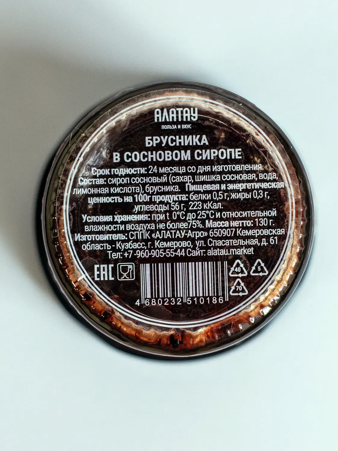 Брусника в сосновом сиропе, 100 мл
