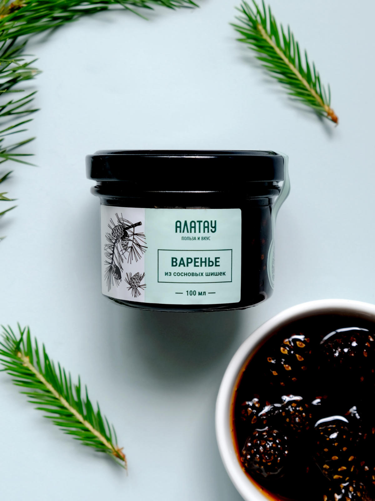 Варенье Алатау из молодых шишек сосны - вкусно, необычно и очень полезно. Каждая ложечка - новые вкусовые ощущения благодаря балансу сладковатых ноток и терпкости хвои. А ароматы тайги, которые сохранили наши технологи, напомнят о детстве и долгих прогулках по лесу.